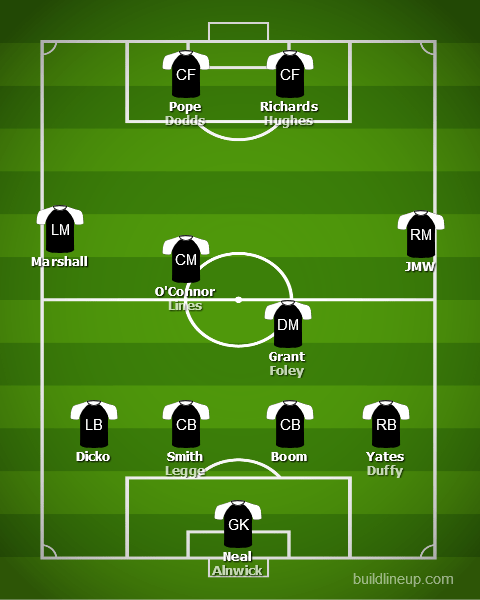 Neil Aspin, seemingly buoyed by England’s success at that Summer’s World Cup, had decided to go with a three-at-the-back system. Fair enough; Antonio Conte had promoted a resurgence of the system in previous years, and it had been employed at the Wembley of the North before by Micky Adams and Rob Page, to relative adequateness.
