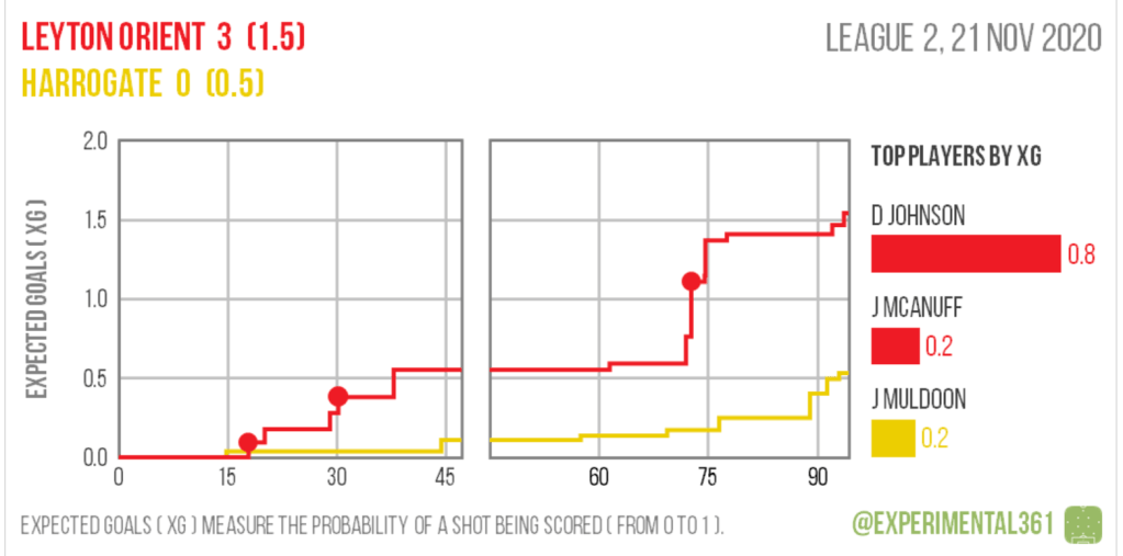 The key takeaway from Orient is that they’re outperforming xG at both ends; in nets, Lawrence Vigouroux profiles as a top 3 ‘keeper at this level, and at the other end, Danny Johnson continues to put away chances at a remarkable rate, yielding 9 goals in 14. Whilst possibly the sign of a top finisher, it is more likely that Johnson will slightly regress in his scoring rate over the coming months.