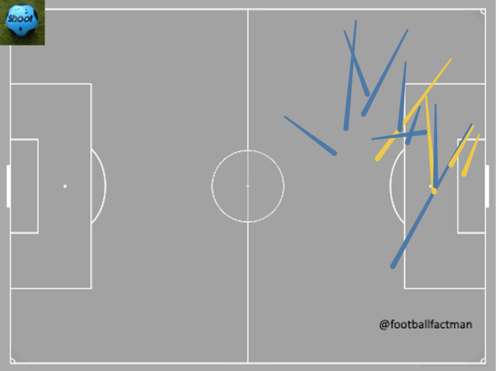 In terms of setting up Johnson, James Brophy jumps out as the side’s main creator, setting up plentiful chances from the left and three of his four assists coming from the left hand side of the penalty box;